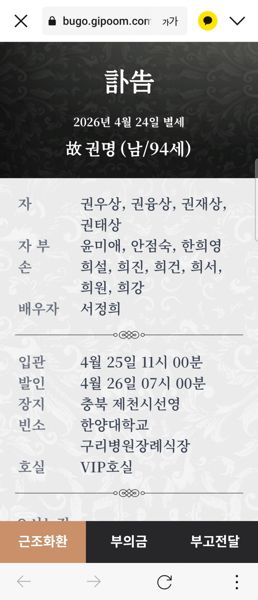 [조사] 72회 권태상부친상