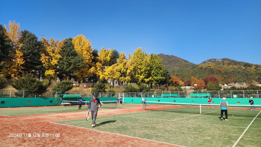 2024년11월12일(월) 과천 정부 청사 테니스 코트에서 13명이 모여 복식으로 예선을 통과한 팀들이 토너먼트로 게임을 하고 식당으로 이동후 회식 시간을 가졌습니다.